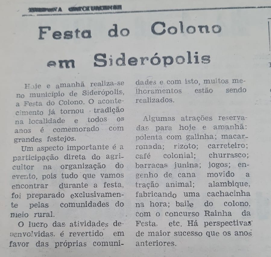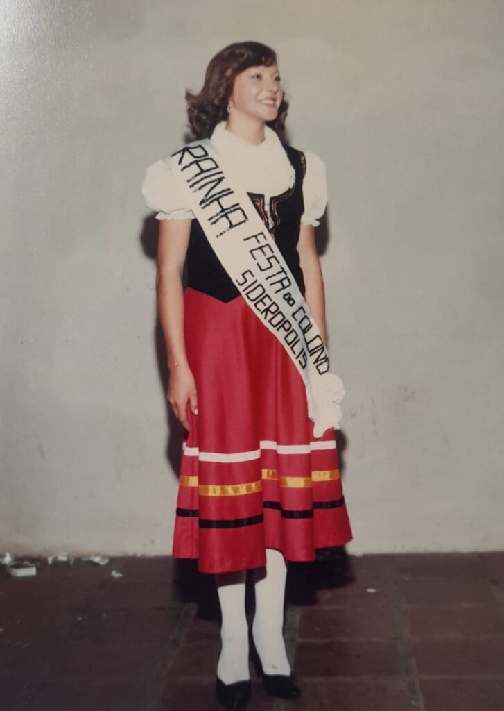 Ela recorda que a primeira festa reuniu grande público e envolveu todas as comunidades, já que Siderópolis e Treviso eram um único município. “Até hoje guardo na memória aquele momento, com muita honra. Eu era menina do interior, sem internet, sem celular. Tudo foi organizado presencialmente, do convite às comunidades à preparação. Foi lindo demais”, disse Anita, que representou a comunidade de Rio Kuntz.