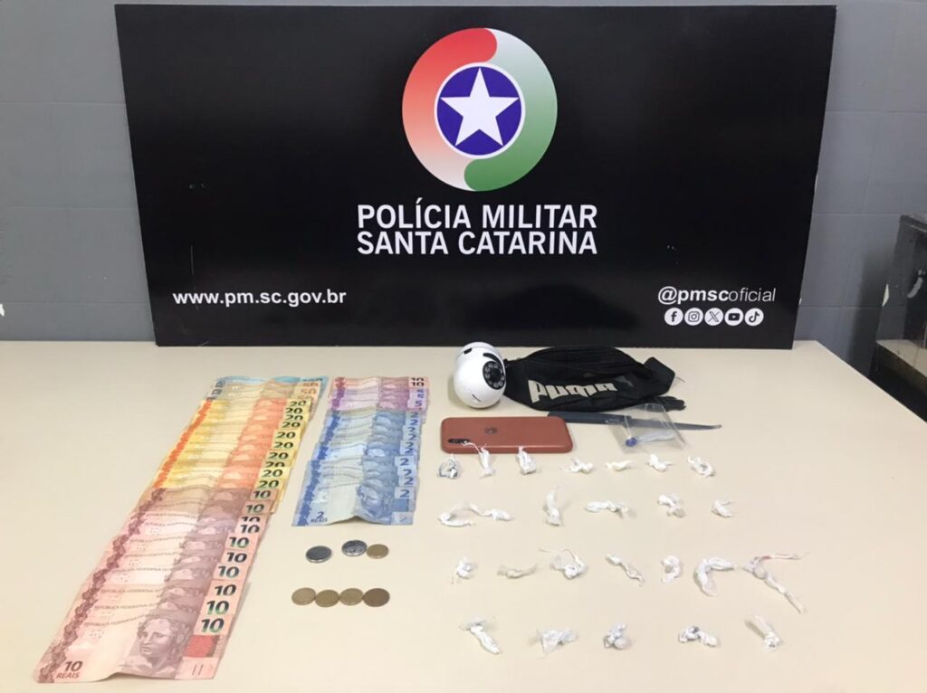 Um deles, menor de idade, foi detido. Durante a abordagem, os policiais encontraram em sua pochete diversas porções de drogas já fracionadas e embaladas para venda, além de R$ 605 em dinheiro. O adolescente confessou que estava traficando no local e que o imóvel era alugado mensalmente por R$ 900, além de uma taxa de R$ 400 paga a uma terceira pessoa. Outro homem conseguiu fugir, mas deixou cair o celular, que foi apreendido.